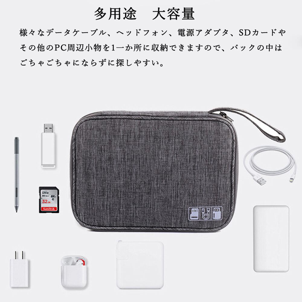 PC周辺小物収納ポーチ デジタル収納袋 仕切り充電器収納 小物入れ 持ち運びポーチ トラベルポーチ 軽量ガジェットケース